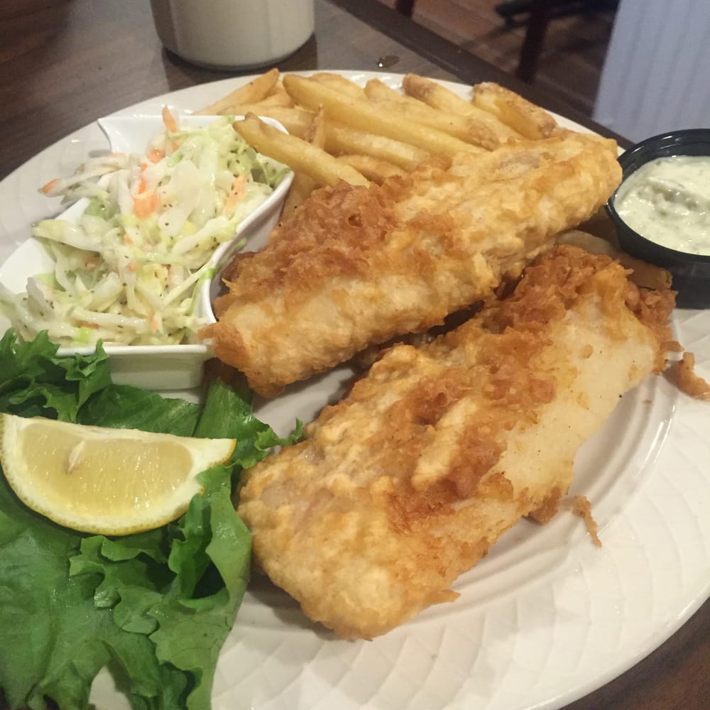 beer battered cod with cole slaw, house tarter sauce and french fries